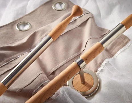 El montaje estandarizado nos ha permitido desarrollar un embalaje común para todos los tamaños de bar y colecciones. Como resultado, nuestra caja de envío ocupa muy poco espacio (15 cm x 15 cm x 110 cm), lo que garantiza entregas seguras y cómodas. Levamos 15 años diseñando gamas de barras de cortina para la mayoría de tiendas de bricolaje y grandes cadenas de distribución de accesorios para la decoración de ventanas. Hemos desarrollado colecciones de barras de cortina de "alta gama" con un sistema de montaje único, combinando diferentes materiales y acabados, aportando una verdadera innovación en este campo y yendo en contra de una clientela internacional que siempre busca la novedad en el diseño contemporáneo.